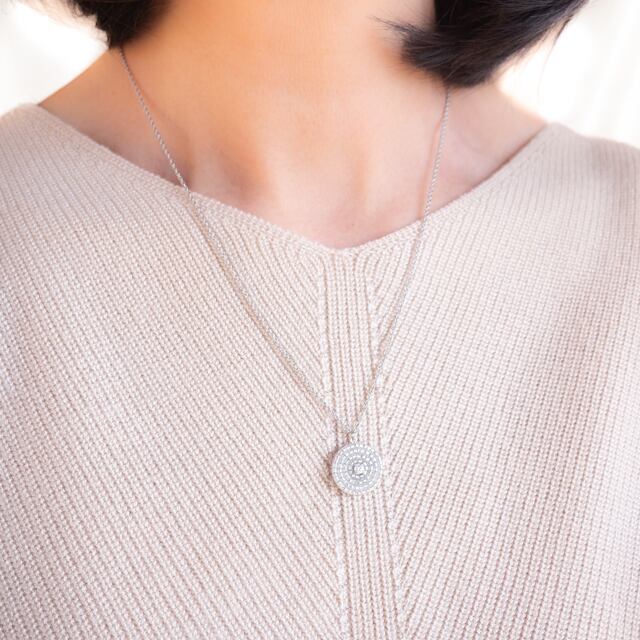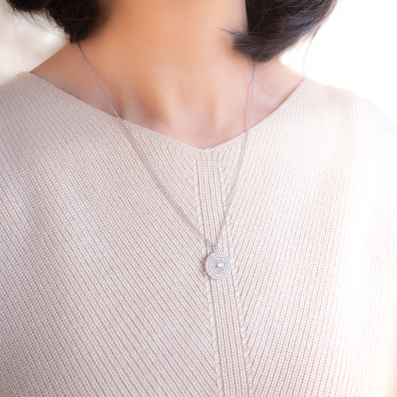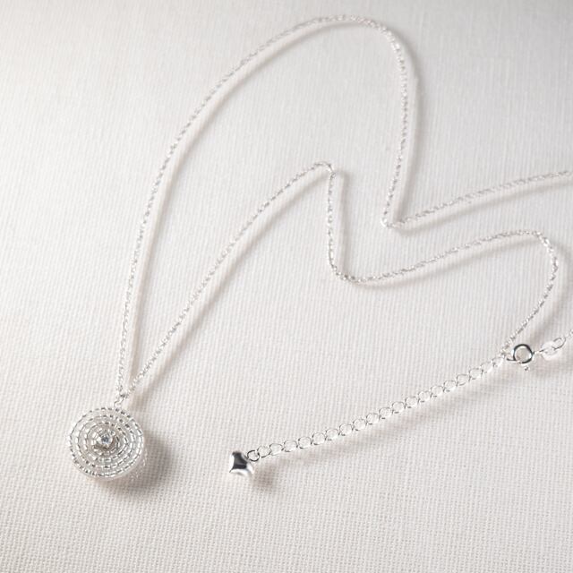 3mmの小さな石が、胸元で繊細にきらめきます。